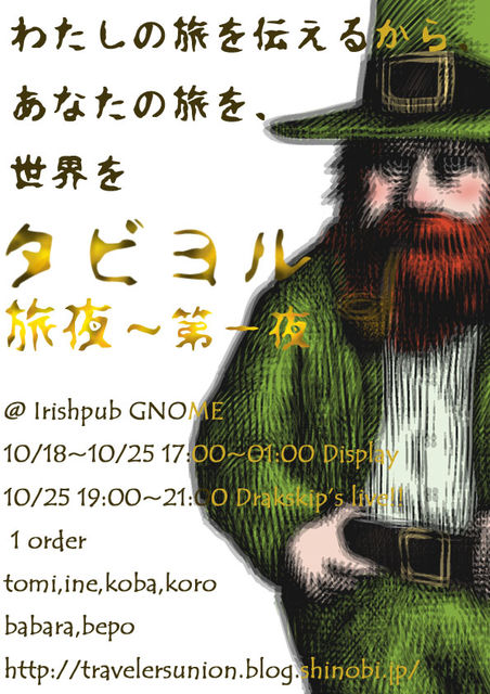 会場は京都市役所近くのアイリッシュパブ『Gnome』(http://gnomepub.exblog.jp/)にて。